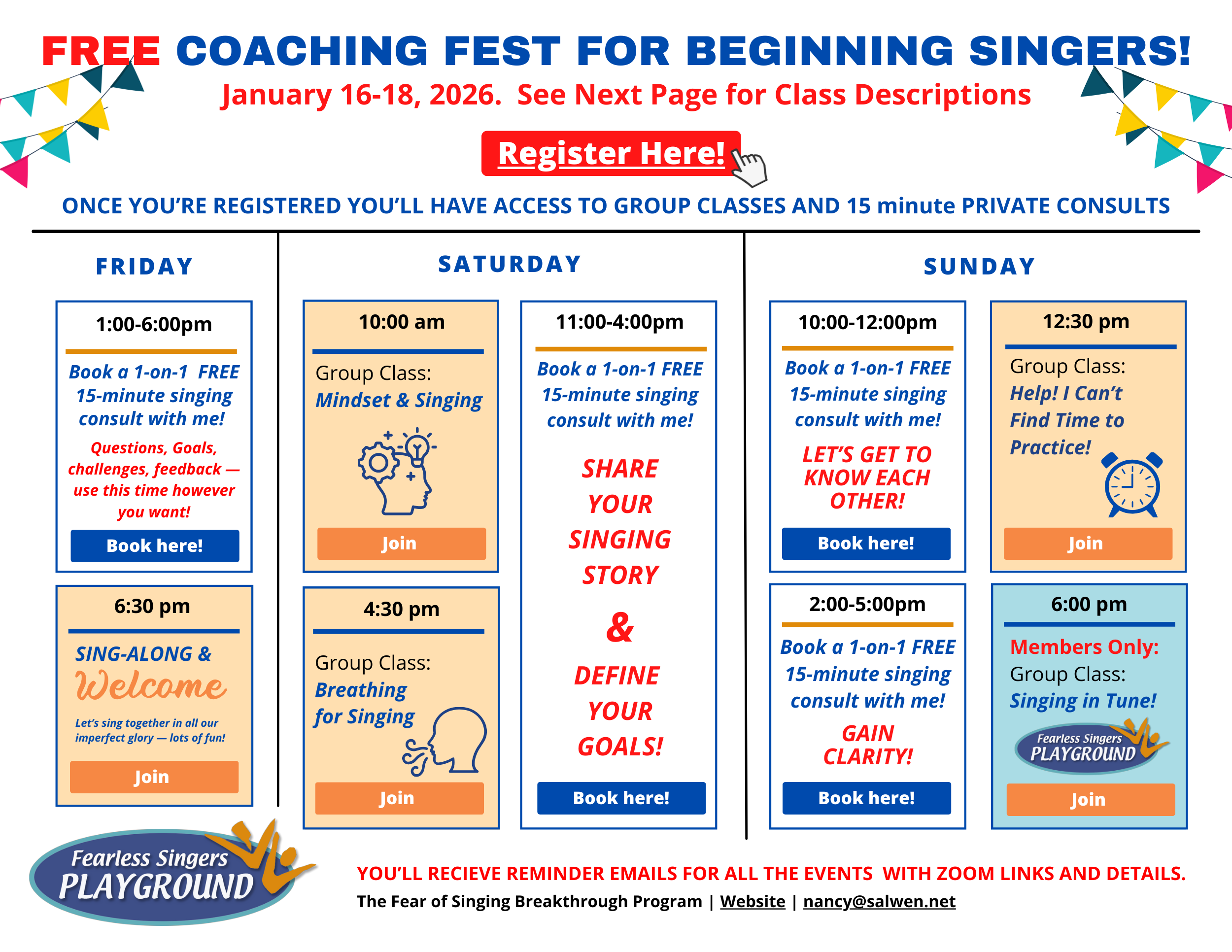 FREE SINGING CLASSES (come to any or all!)…