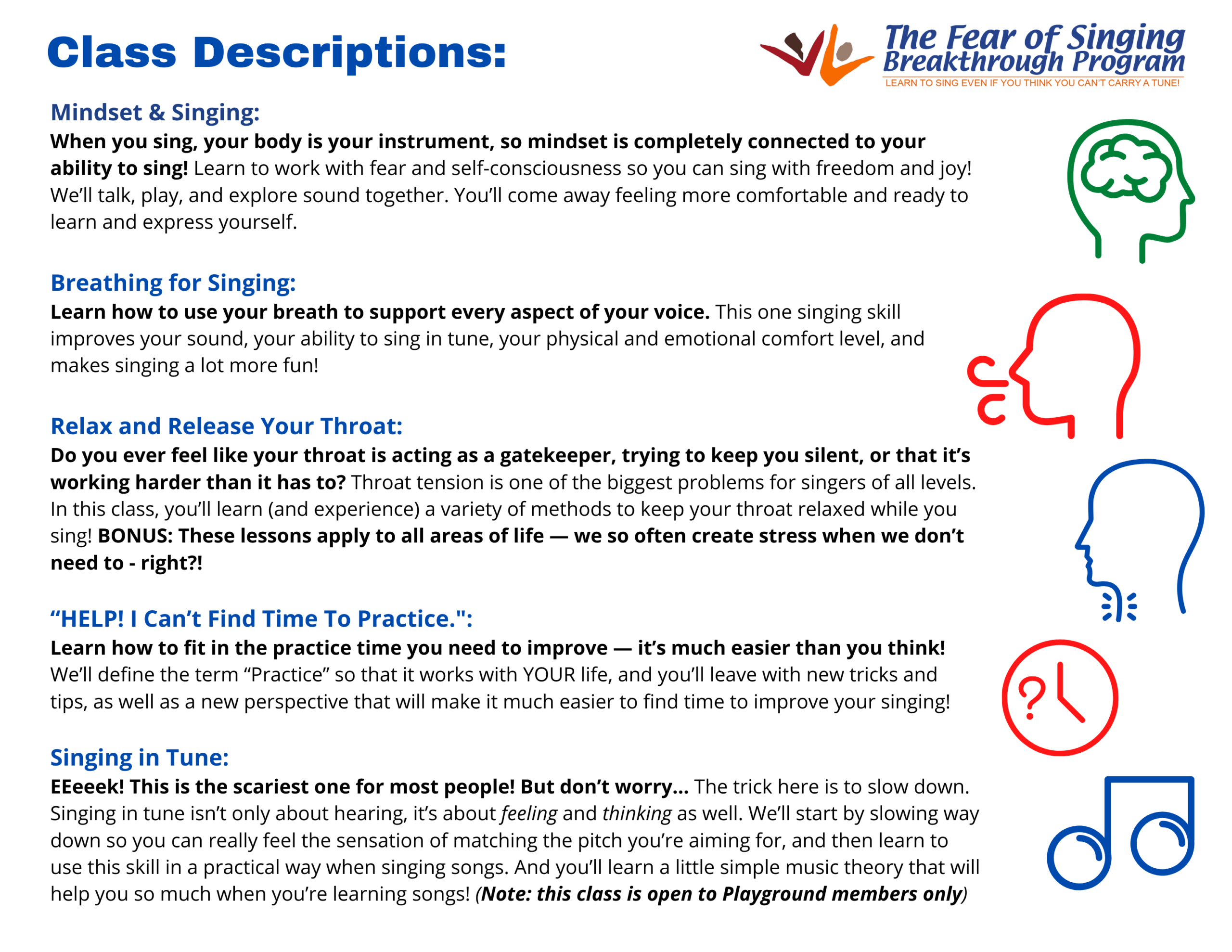 Nancy Salwen is a singing teacher and the founder of The Fear of Singing Breakthrough Program, and the author of the book by the same name. She teaches singing to "non-singers," beginning singers, and anyone who wants to be more confident and expressive with their voice. She leads workshops in New England, New York City and California and teaches private lessons over Skype. In addition she is a Music for People certified workshop leader and leads music-based team building workshops for businesses and organizations, and an early childhood music educator and Music Together teacher and center director.